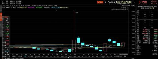 受上述消息影响,在港上市的万达酒店发展早盘出现大幅上涨,最高涨幅达到12.5%,随后涨幅有所回落,截至收盘,万达酒店发展报0.79港元,涨幅9.72%。