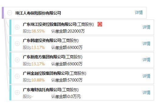 记者查询获悉,珠江人寿成立于2012年,由广东珠江投资控股、广东金融控股、广东新南方集团、广东韩建投资、广东粤财信托持有。