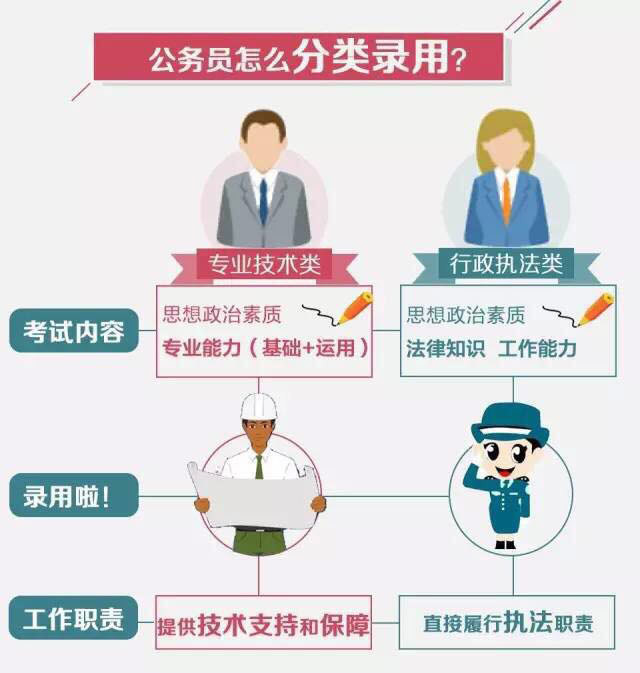 7月14日,中共中央办公厅、国务院办公厅印发了《专业技术类公务员管理规定(试行)》和《行政执法类公务员管理规定(试行)》全文公布。人社部发言人李忠表示,这两个规定标志着我国公务员分类管理的制度框架体系基本确立。我国的公务员队伍有几百万人,两个新规的出台,将会产生哪些影响呢?