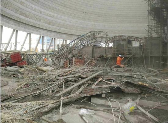 24日一早刚过7时,他们10多位工友就到达冷却塔内,进行零班与早班的交接。在他们头顶上方70多米的高处,搭建有施工平台,那里还有几十名工人。大概五分钟后,他们突然听到头顶上方有人大声喊叫,接着就看见上面的脚手架往下坠落,砸塌水塔和安全通道。在地面层工作的工人迅速往冷却塔外跑。短短十几分钟的时间内,整个施工平台完全坍塌下来。>>江西丰城电厂坍塌事故失联人员找到 正在抢救
