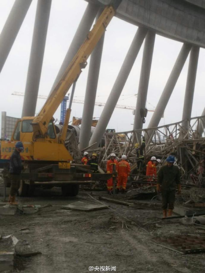 据现场目击者称,坍塌施工平台目测高度至少20层楼高。