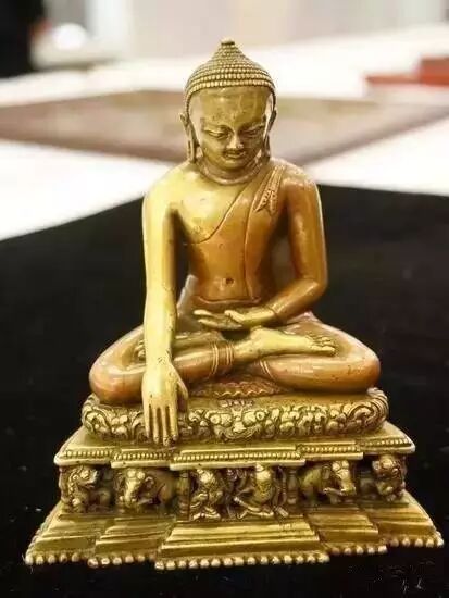 王世襄旧藏 11-12世纪, 帕拉王朝,合金黄铜、红铜合铸,白银、红铜镶嵌,高12.5厘米,底宽10.5厘米,原始装藏,著录《俪松居长物志——自珍集》