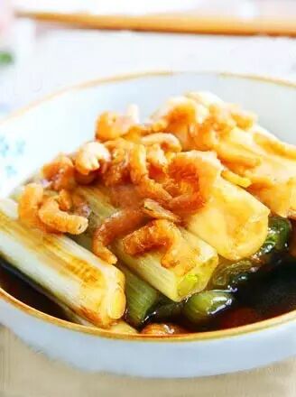 一道京葱跟海米做的“焖葱”,