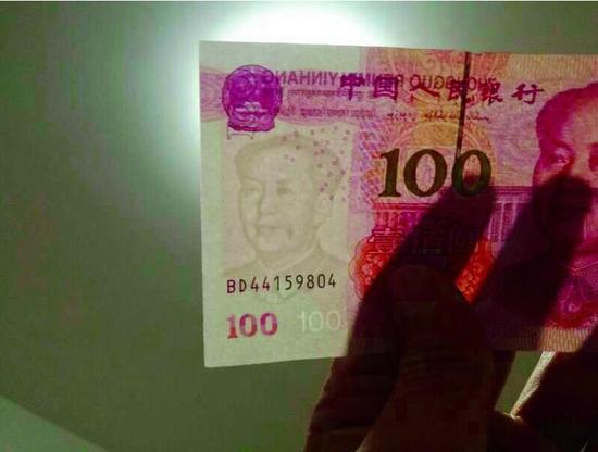 "以前曾在报纸和电视上看过有人在银行取到错版人民币的新闻,没想到,这样的巧合会轮到自己身上。"近日,家住武昌水岸星城的刘先生无意间发现,自己在银行取的一张编号为BD44159804的新版百元钞票上,毛主席水印嘴角左侧多了颗又长又大的"痣"。