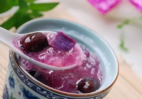 原料:大米、松子少许、银耳4朵、紫薯2个、蜂蜜。