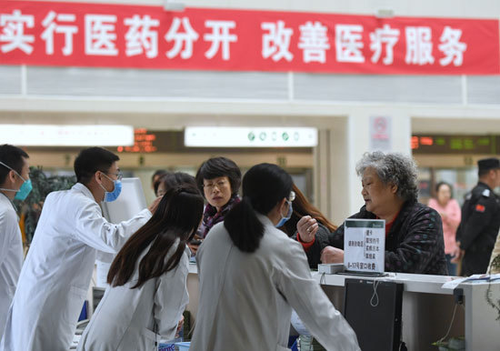 4月8日,医药分开综合改革全面实施,3600余家医疗机构全部取消药品(不含中药饮片)加成和挂号费、诊疗费,设立医事服务费,医疗服务价格也进行了"有升有降"的调整。图为北京协和医院。视觉中国供图