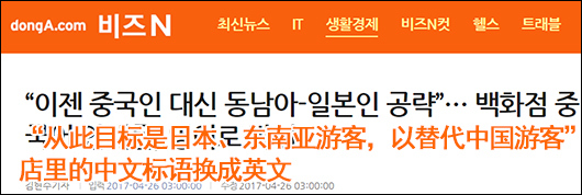另外,乐天还改变了"五一"促销策略,相关人士说:"我们正在改变以吸引中国游客为主的政策。"