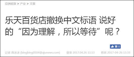 乐天集团董事长辛东彬也曾亲自出面表态,在接受《华尔街日报》采访时说"我热爱中国。我们(乐天)非常希望在华开展业务",并将中国称为"祖先的故土"。