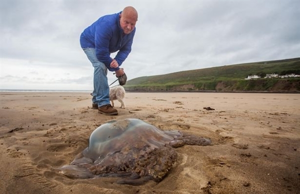 其实上周在威尔士西部海滩上就曾出现了布满了数百个”半透明”状的物体,仔细一看全是宽达1米的大水母。不少到这海滩游玩的民众看到眼前的景象,几乎都吓懵了。