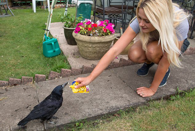 据英国《每日邮报》6月28日报道,英国女子海伦•莫特兰姆(Helen Motteram)是一个名副其实的动物爱好者,她收养了一只残疾乌鸦,这只乌鸦虽然不能飞但很淘气,“嫉妒心”也不小。现在这只乌鸦已经成为海伦家庭的一份子。