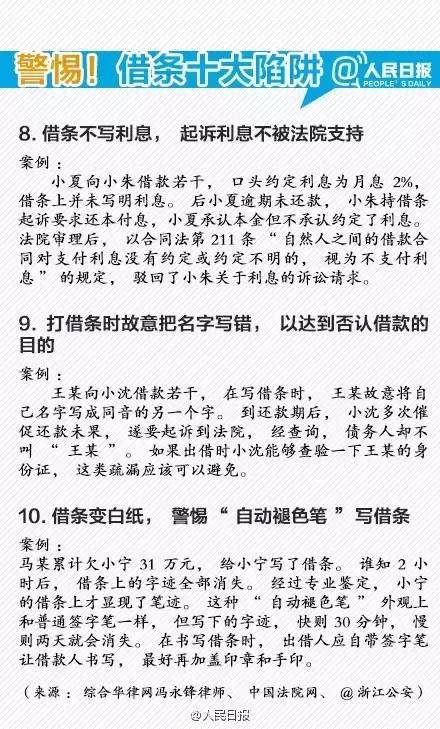 除此之外,债主们还需注意借条中债务人的署名及身份证号码一定要与身份证保持一致,避免对方写小名或外号的情况发生;同时,一定要把双方商定的利息写进借条,避免到还款时债务人装傻赖账。