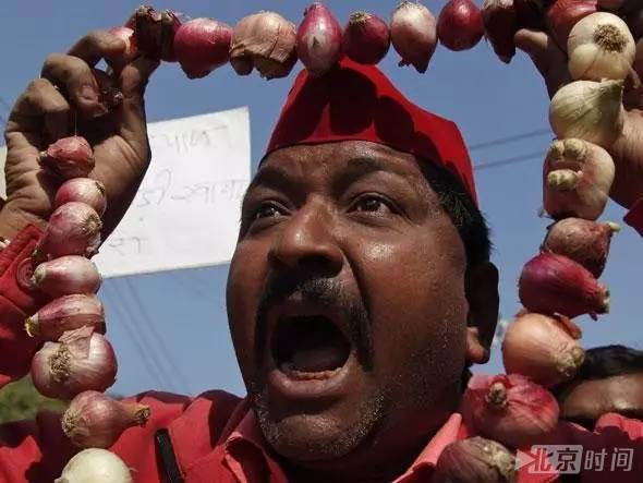 洋葱危机多次让印度泪流满面,民意专家打趣称,预测印度选举结果,只需看看普通百姓盘中有没有洋葱。