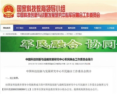 自称“中国科技创新与战略发展研究中心军民融合工作委员会”的网站。网络截图