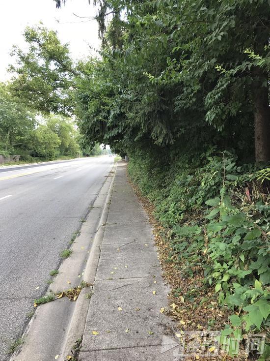 即便有人行道的地方,大多也缺乏统一管理。估计是富人或者高级中产阶级社区的一些地方,在别墅整齐的草坪外,往往会配有比较标准化、平整的人行道。然而,在一些无人居住区域或者估计不那么有钱的社区,人行道要么没有,要么就是坑坑洼洼,经常看到一些路边的野草或者垂落的树木枝条。