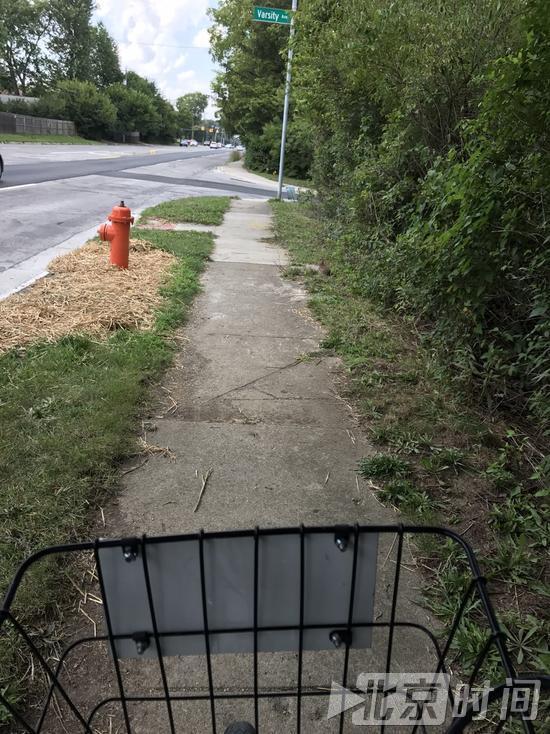 一边是宽阔的道路、疾驰的汽车,另一边是破旧的人行道和堪称行路难的骑行,这从某种侧面反映出美国政府在基础设施上投入的价值取向。