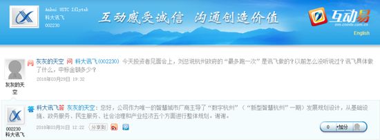 2018年3月,科大讯飞在深交所互动易平台宣布: